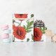 Poppies, red and green on white wrapping paper