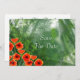 This Poppies Save The Date Announcement features Digital art painted Poppies on a green background with layers of plants and greens.