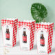 Add a retro touch to your party favours with “Poppin’ Into One” popcorn boxes featuring a classic glass soda bottle design. The vibrant red and white gingham background brings a wholesome, picnic-inspired feel that complements any birthday celebration. Personalise each with your event details and serve treats to guests with style and charm.