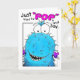 Popping By Blue Fuzzy Monster Birthday Card