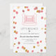 Bounce house party invitation featuring The White Bounce House Poppy house design with pink watercolor dots. Items sold through The White Bounce House are recommended for bounce house themed events, and are designed to complement any and all of The White Bounce House rental options.