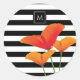 Poppy Chic Black Stripes Monogram Classic Round Sticker