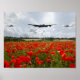 The Lancaster and Spitfires from the Battle of Britain Memorial Flight passing over a field of poppies