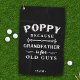 Grandfather is for old men, so he's Poppy instead! This awesome quote design is perfect for Father's Day, birthdays, or to celebrate a new grandpa or grandpa to be who loves to golf. Design features the saying "Poppy, because grandfather is for old guys" in white lettering on a black background. Personalise with his initials along the bottom for a custom touch.