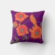A unique and bright complementary coloured orange and olive green and purple mauve poppy stylised pillow. Uniquely designed by Sarah Trett. Would look great in a summer room or bedroom.