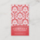 Fun and Classy business card in Red and White with a unique damask pattern and lots of space for your business information