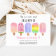 This adorable invitation features hand painted watercolor popsicles in pastel colours.