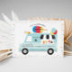 Pop on over for a sweet time at this popsicle party! The perfect popsicle/ice cream birthday party invite for boy or girl of any age. All text is editable. Design features a mint blue popsicle truck, black and white awning, frozen treats and colourful sprinkles. Back design features the back of a popsicle truck that you can customise with more party info!