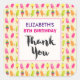 A birthday thank you sticker with an image of a summery pattern with popsicles and ice cream in watercolors. Colourful vibrant colours such as pink and lime green. Thank you written in a cool trendy font. Personalise with your event details.