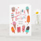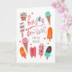 An trendy pink with orange birthday greeting card for the summer with ice-cream & popsicles to congratulate someone with his or her birthday. Original artwork by Caroline Bonne Müller