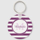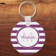 Popular Bright Purple Stripes Pattern and Monogram Key Ring