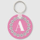Popular keychain gift for girl's 8th Birthdays. Cute design with daisy flowers. Pink or custom colour. Personalise with name initial monogram and age number.
