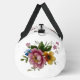 I actually had been searching other sites for a duffle gym bag and I couldn't find any. This one is just what I was looking for with all the features. The inside zip pocket, the outside mesh pocket and LOTS of room inside. Love the printing. Really like how the floral print turned out.