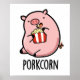 Porkcorn Funny Popcorn Pun features a cute pig enjoying a tub of popcorn . Perfect Puns gift for family and friends who love cute pig puns.