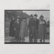 Un groupe de personne dehors portant un masque sur la bouche. C'était probablement pendant la grippe espagnole de 1918. Une des femmes porte une pancarte autour du cou : "Porte un masque ou va en prison".
