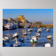 Port at low tide at the end of the sunny day and church of Saint-Nicolas of Barfleur, a commune in the peninsula of Cotentin in the Manche departmentin Lower Normandy in north-western France