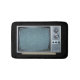 Photograph of a portable 1970s television with static on screen. Customisable black background.