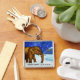 Porte-clés ou accroche de sac ou de cartable avec texte personnalisable pour enfants et adultes. Vous pouvez par exemple inscrire votre nom ou celui de votre enfant, et un téléphone, ou inscrire un message ou petit mot d'encouragement de votre choix. L'image : un éléphant teinté de cuivre et d'or, dans un paysage glaciaire, sur un fond de ciel bleu étoilé. Petit cadeau idéal durant l'hiver et les temps de l'Avent, Noël, Nouvel An - ou lors d'une rentrée scolaire ou d'un changement de domicile.