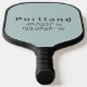 Pickleball paddle features latitude and longitude map coordinates for the city of Portland, Oregon in modern industrial font