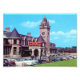Commissioned by the Maine Central Railroad, and shared jointly with the Boston and Maine, and Portland and Ogdensburg Railroads. It was designed by Bradlee, Winslow and Wetherill of Boston, and opened on June 25, 1888. Granite came from the Redstone quarry, near Conway, NH; pink granite was used for the walls, and white for the trim. The waiting room floor was a chequerboard of white marble and grey slate, all bordered in red slate. Baronial fireplaces at either end were carved from red sandstone and had inserts of Tennessee and Vermont marble. Above, painted motifs adorned the ceiling. The clock in the 138-foot tower was reputed to be the most accurate outdoor timepiece in New England. It was equipped with a “double three-legged gravity escapement” device, invented by E.B. Denison for Big Ben at Westminster, and it was built to withstand harsh elements. The station was expanded in 1905, and a three-bay addition was designed by George Burnham, built in 1911.