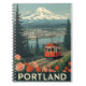This Portland-themed notebook features a vintage-style illustration that captures the city's unique charm. The cover shows a classic streetcar with a backdrop of a snow-capped mountain, a river, and the city skyline. This design is a perfect blend of urban life, nature, and retro travel art, making it an ideal gift for visitors, residents, or anyone who loves the distinct character of the "City of Roses."