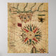 Detail of a Portolan chart with a colourful compass. Portolan or portulan charts are navigational maps based on compass directions and estimated distances observed by the pilots at sea. © Bridgeman Images