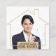 Professional style cover ideal for real estate agents, household maintenance professionals and construction services. Space for business portrait photo image framed with house shape line.
