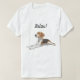 This T shirt features my drawing of a reclining black tan and white Beagle.