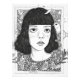 Portrait of a girl with flowers at background. Black and white line drawing.