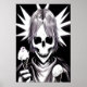A portrait of a happy Skeleton with hair and clothing holding two ice cream. This is a AI generated art.