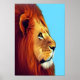 Portrait of a cute and adorable lion on a blue background. This is a AI generated art.