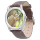 I was uncertain about the size being too small but it looks good. The case looks like aluminum (not shiny) and the time is easy to see. I changed the band because the leather doesn't go with my lifestyle.a. Exactly what I expected, nice yellow. It grabs peoples attention.