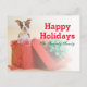 Portrait of a white and brown Boston Terrier Holiday Postcard
