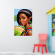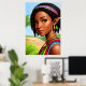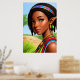 Portrait of a young women human elf hybrid with black skin, black short hair and wearing a colourful dress. (Half human, Half elf). This is a AI generated art.