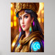 I asked the AI to make a portrait of the Greek Goddess Athena, here with blue eyes and blue purple hair and gold colored clothes. she is associated with wisdom, warfare, and handicraft. This is a AI generated art.