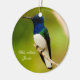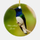A Photographic Moments Design featuring an attractive and animated photographic image of the "White-collared Jacobin" hummingbird in this one-of-a-kind "Portrait of Contemplation" round ornament. This colorful and eye-catching design comes complete with customizable text lettering to suit your own personal design. Add this to your curio cabinet or set in any window of the house to add color and character to your home or office. Great as a Christmas stocking stuffer or gift for any occasion.