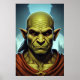 Portrait of Elf orc hybrid male with green skin, and is bald. (Half orc, Half Elf). This is a AI generated art.