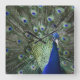 Portrait Of Peacock With Feathers Out Square Wall Clock