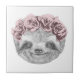Portrait Of Sloth | Floral Head Wreath Ceramic Tile