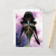 Portrait of woman holding microphone postcard