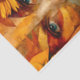 A sunflower blooms across the right side of a woman's face, her blue eyes staring out from a tapestry of golden tones and layered abstract textures. This richly detailed collage portrait is infused with oranges, yellows, and reds, blending organic floral motifs with painterly marks and  patterns. Both elegant and powerful, the composition evokes emotion and bold creativity. Perfect for decoupage, collage, and artistic wrapping. Artwork similar to a mixed media digital painting with elements of surrealism and bohemian symbolism…..COLOR COMBINATIONS: Golden yellow, orange, red, beige, sky blue, warm umber, and deep rust…..PERFECT FOR:nBoho decoupage, mixed media collage, artistic gift wrap, surrealist projects, sunflower themed crafts and bold feminine designs.……. 🖤 NOTE 1. This design is available in two options: Left and  Right. You can find them in the Collection shown below. If they don’t appear there, try searching for their unique identifiers: DS8L for the Left design, and DS8R for the Right version….🖤 NOTE 2. I personally find that 18lb tissue paper is ideal for decoupage. The 10lb paper is much thinner, so it dries faster, which can lead to more wrinkles. The 18lb paper is a bit thicker, giving you more time to work with it and helping to reduce wrinkles..….🖤 NOTE 3. All items with this particular design share my unique identifying “Letter/s Number/s” label in the title for easy searching.