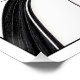 Black and white illustration of an elegant woman with a retro style. It is portrayed in profile, with an intense look and dark lips. Her hair is topped in wavy waves, reminiscent of the glamorous style of the 50s. The illustration shows a high level of detail in the facial features and highlights the grace and sophistication of the subject through expressive line work.