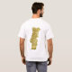 The front of this t-shirt bears a small Portuguese flag with its familiar offset coat of arms over a green and larger red vertical band, while the back displays a relief map of Portugal. Available on t-shirts, sweatshirts, polos, long-sleeves and more.