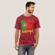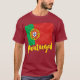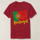 A stylised design of the red and green Portuguese flag with the word Portugal in script letters. Country, places, heritage.