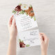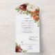 This Português All in one Wedding invitations that include the wedding info and RSVP postcard. An inspiring combination of burgundy, dark orange and white rustic blooming watercolor flowers. Change the text by clicking on the "customise" button. Personalise the information by clicking the "details" button.