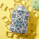 This product has an intricate design with a dark blue background and white ornamental patterns. The design is reminiscent of traditional ceramic or porcelain styles, which may interest those who appreciate classic or vintage aesthetics.