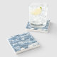 The coasters are gorgeous, a quality feel and heavy weight. They look like a precious archeological find. A rustic stone juxtaposed with a modern floral black and white print. I like the way the print goes slightly imperfect on the cut stone edges giving them a kind-of natural beauty.
