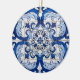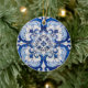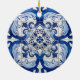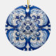 Portuguese Glazed Tiles floral pattern in blue and white transported to the surface of a modern Christmas Ornament, preserving its history and tradition. Azulejo is a form of Portuguese or Spanish painted, tin-glazed, ceramic tilework. It has become a typical aspect of Portuguese culture. Portugal imported azulejo tiles from Spain, and their use was widespread in religious and private architecture, particularly on facades.
