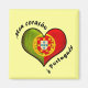 Portuguese national flag in the shape of a heart and the words "Meu coração é Português" which translates to "My heart is Portuguese"