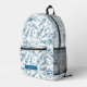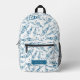 A Portuguese Lisbon sardines illustration with Azulejos style pattern. The white background colour contrasts against the white and blue design. Ideal design for anyone who loves Lisbon city, Portuguese and Spanish Azulejos art, Mediterranean style art or fish illustrations. The perfect decorative backpack design, ideal gift for any occasion. Customise the name and make it your own.
